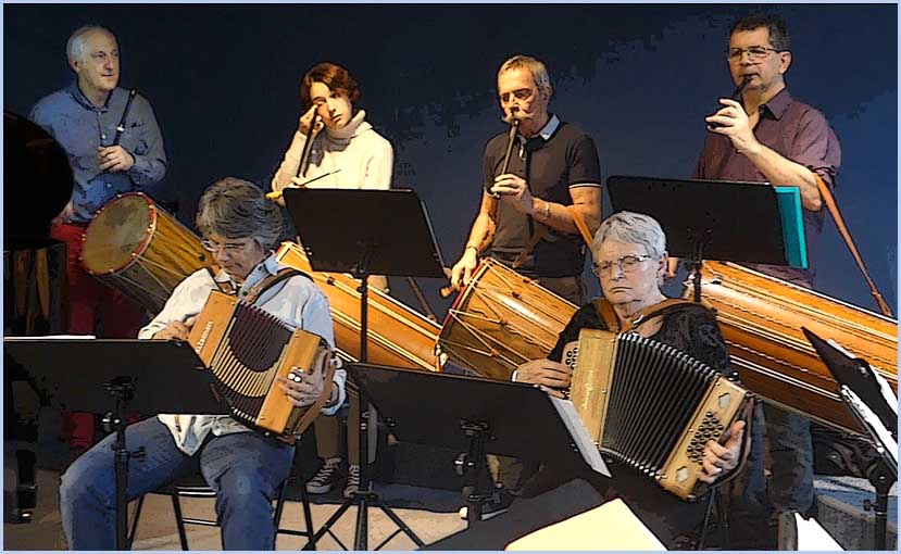 Chauffés à souhait, danseurs et spectateurs ont fini par participer aux danses collectives (bourrée limousine, sauts béarnais, gibouli provençal). Au final, une fameuse valse (de Luis Llach) et une polka-farandole hybride (Italie-Provence) ont conclu cet extraordinaire intermède.   J. P.
