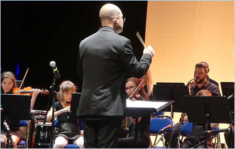| Valentin Conte dirige son harmonie... puis l'orchestre symphonique | |||