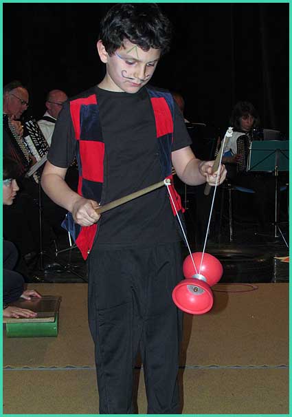La scène regroupait une quarantaine d’exécutants non professionnels, dont des enfants livrés aux jeux du cirque sous la houlette de l’école Badaboum (Vaison-la-Romaine). Dirigés par Michel Pallarès, un détachement de l’école de musique et le choeur mixte Vocalia ont rythmé un crescendo où l’enjeu consistait à passer du stade de l’enfance à celui de jongleurs et acrobates. La grâce infantile a conquis tous les cœurs. Le pot amical, offert en fin de spectacle, aussi.