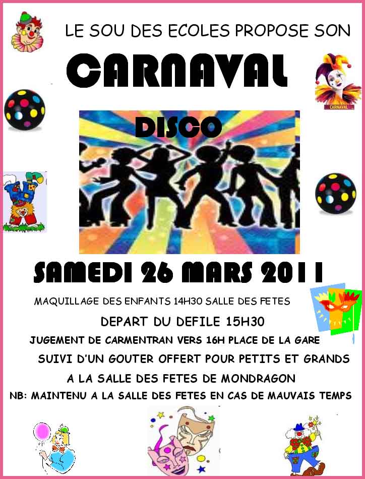 annonce le Carnaval de Mondragon pour Samedi 26 mars 2011