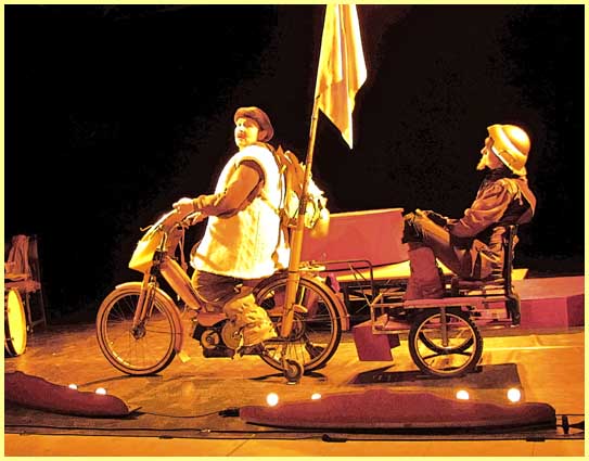 Les distraits (dont nous sommes) n’auront sûrement pas prêté attention sur l’affiche à certain petit « e » censé féminiser une extraordinaire imposture. Ils n’auront pas davantage remarqué par qui était joué ce Don Quichotte, flanqué d’un montreur nommé Sancho Panza. Ce double avantage laissait croire à deux rôles masculins. En fait, ils le sont bien, mais joués par deux femmes !