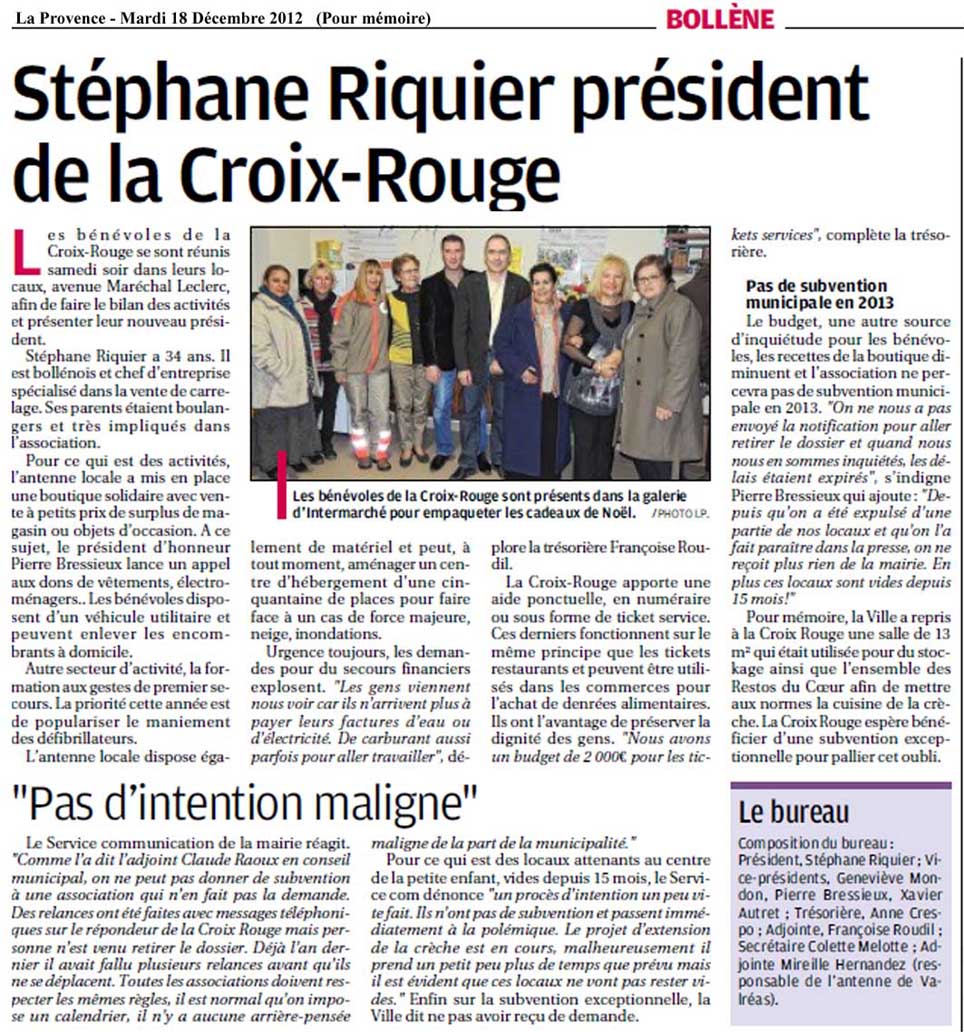 Tous les quatre ans, les antennes de la Croix Rouge procèdent au renouvellement de leur bureau. C’est ce que vient de faire celle de Bollène qui, depuis une réorganisation générale en 2008, fusionne avec celles de Valréas et Vaison-la-Romaine. Les trois antennes rayonnent sur 31 communes du département et totalisent une quarantaine de membres actifs.