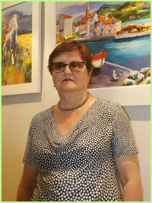 Amateurs de productions contemporaines sortant du rang, s’abstenir. L’artiste pourvoit ici au simple plaisir des yeux. En autodidacte éclairée, voici une dizaine d’années, elle s’est attelée à l’aquarelle auprès de Guy Covelli, un maître du genre. Chemin faisant, elle s’est initiée à la peinture à l’huile, puis particulièrement à la technique du couteau, auprès de Christian Jecquel, autre spécialiste.