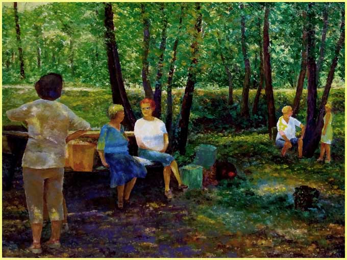vingtaine de tableaux figuratifs dus à Claudette Philippeau-Gimenez, Thérèse