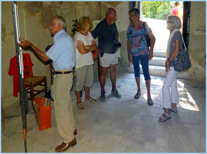 Comparable à nulle autre, cette exposition éphémère au cœur du Massif d’Uchaux ne dure qu’un dimanche. Elle occupe la chapelle Saint-Pierre (XIIe siècle) du hameau de Derboux, à l’occasion de la fête organisée par la Souco. Avant de participer à un loto sous la halle récemment inaugurée, au terme d’une promenade bucolique à travers le vignoble, les visiteurs pouvaient donc se rendre au saint lieu, où étaient exposées des œuvres dues aux artistes locaux suivants, membres de l’association « Nuances » : Thérèse Herbron, Robert Lloret, Claudette Philippeau, Mireille Rocheblave et Clarisse. Un hommage posthume était aussi rendu à Simone Félix, après la découverte d’un tableau datant de 1942, représentant un loulou de Poméranie.   J. P.