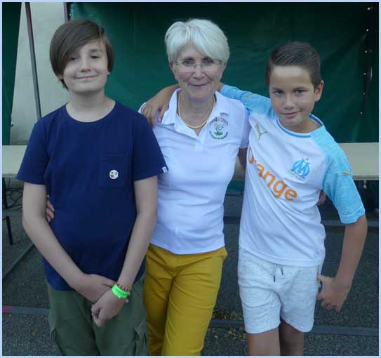 ![]() Le tout jeune Derboussien Loïc, 10 ans (à droite), accueille durant trois jours son copain américain, 14 ans, (à gauche), domicilié à New York et attaché à Derboux où ses grands-parents ont acheté une maison et y viennent en vacances chaque été. Leur petit-fils (dont j'ai oublié le prénom !) est venu en stage en France pour un stage au sein d'une association. La Souco et sa présidente Nadine Portalier (au centre) en sont absolument ravies ! |