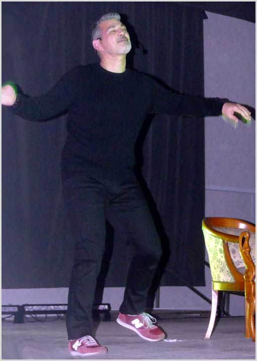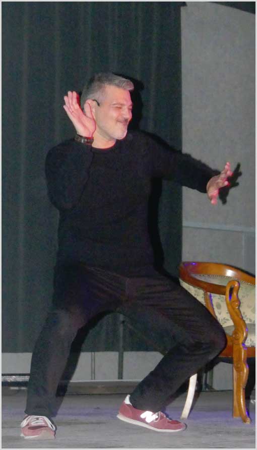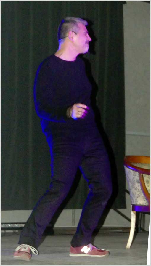 Des similitudes nous révèlent maintenant le cas de Didier Llorens, dit simplement Didier (sans patronyme) pour la scène. Il a vu le spectacle de Bénédicte Bousquet qui l’a encouragé à faire pareil, à partir d’un métier qu’il exerce depuis dix ans : animateur de maisons de retraite. D’où cette autobiographie scénique débridée, « Les yeux dans les vieux ».