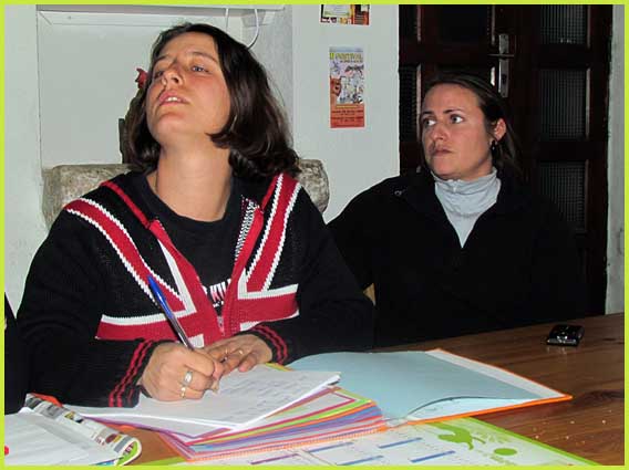 De gauche à droite : les couturières, la trésorière, la secrétaire, Charly (alias l'Abbé Tonnière) et la présidente (qui se mord le doigt).