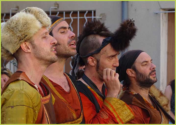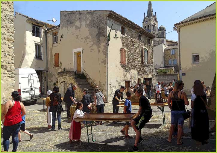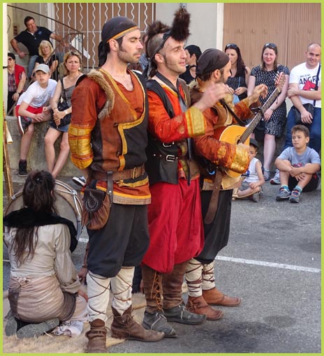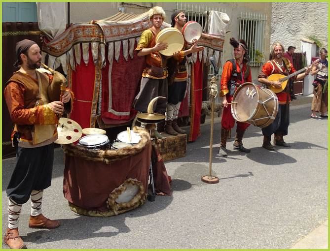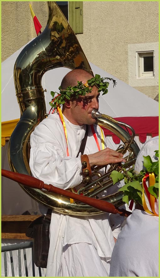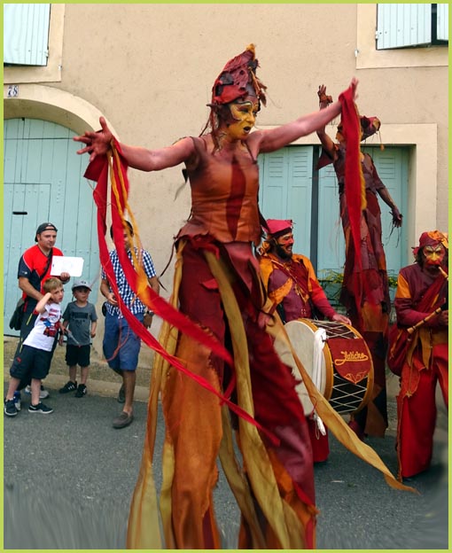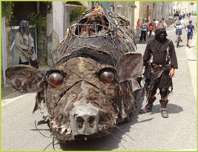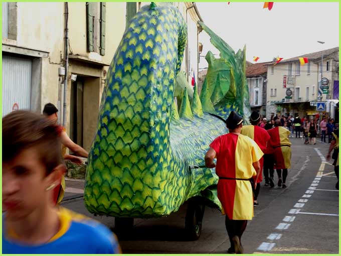 Restent tout de même des points forts et stables : la taverne avenante du Comité, six excellents groupes de musiciens et saltimbanques, un campement de chevaliers du haut moyen âge, les jeux en bois d’antan, les animaux d’une ferme pédagogique et une exposition de peinture présentée par Nuances (sur laquelle nous reviendrons). Le tout converge vers le défilé historique, avantageusement enveloppé par la nuit complice, pour un corso succédant désormais à toute trame scénarisée, mais où, en bout de procession, survit le Dragon, censé préserver une légende du Rhône.   J. P.