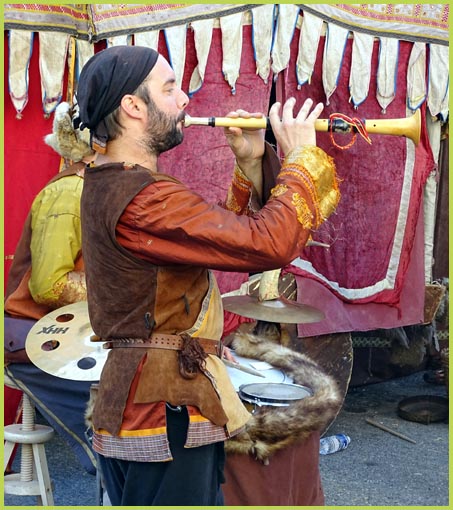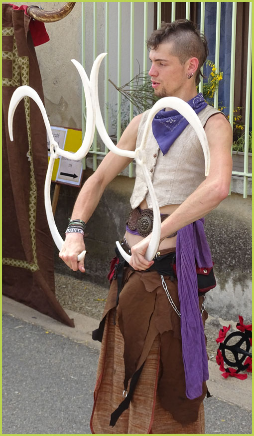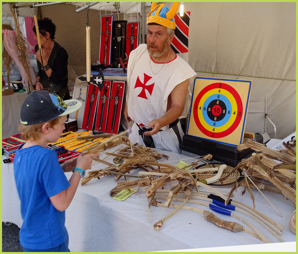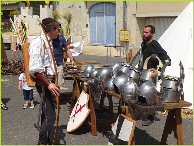 Roland Riché (à droite), acteur des années fastes passées...             Un stand d'artisanat médiéval