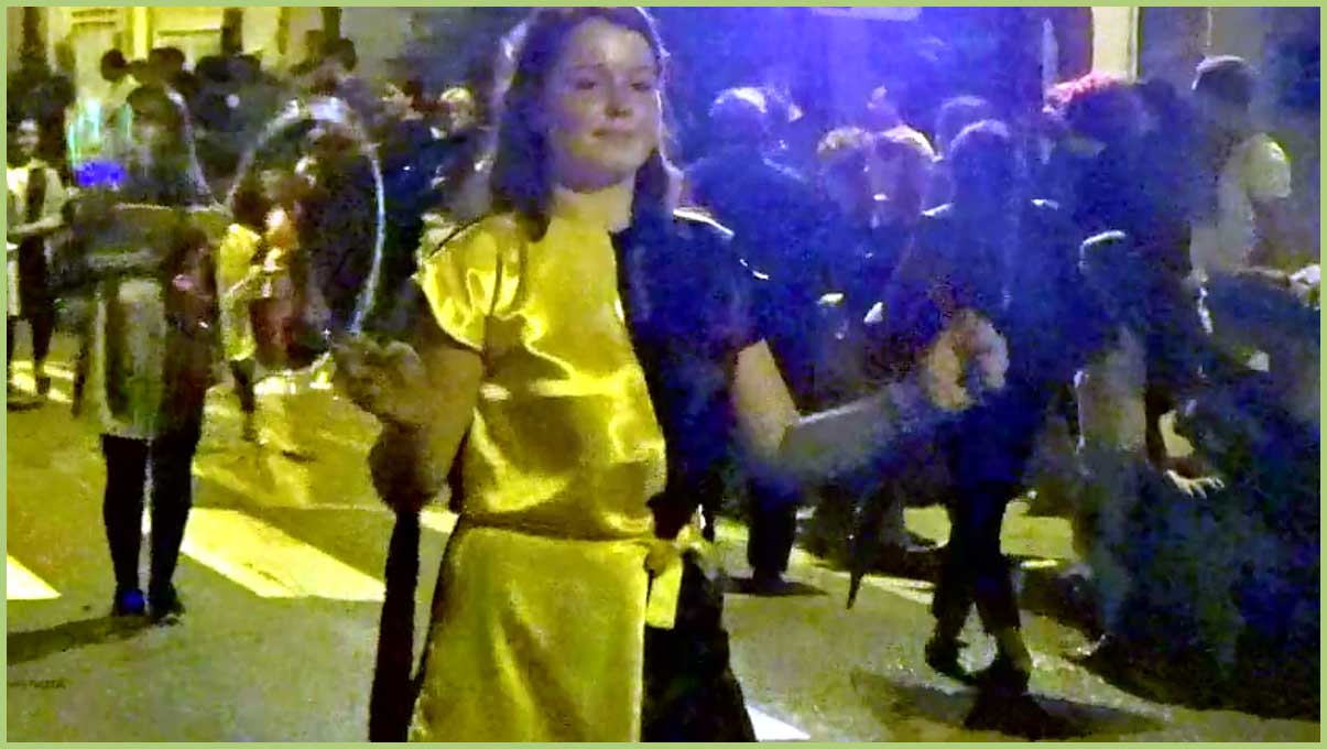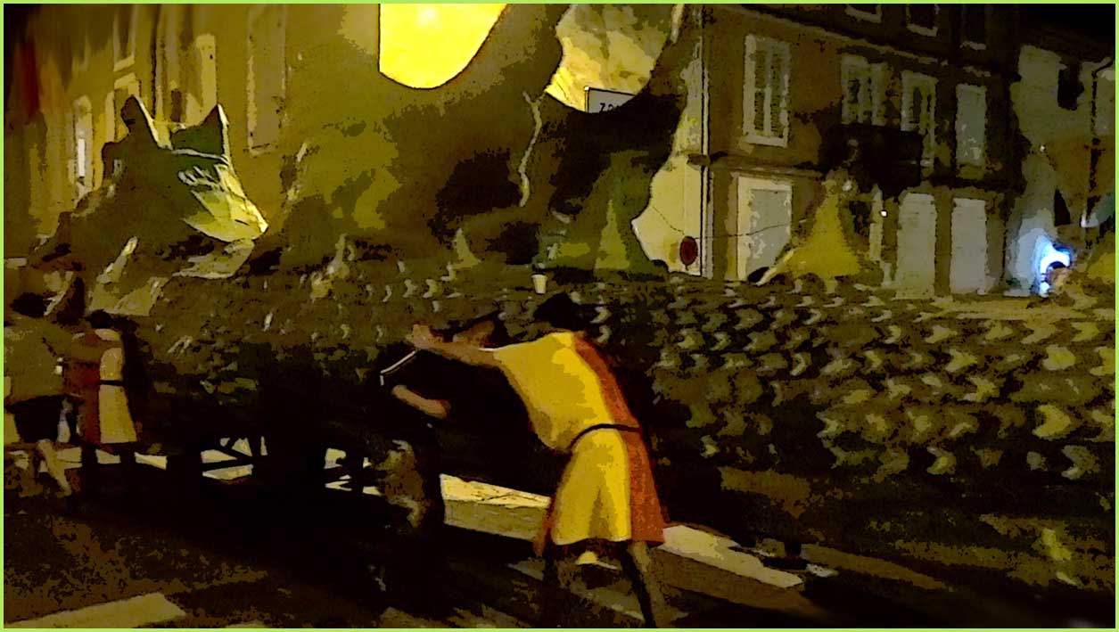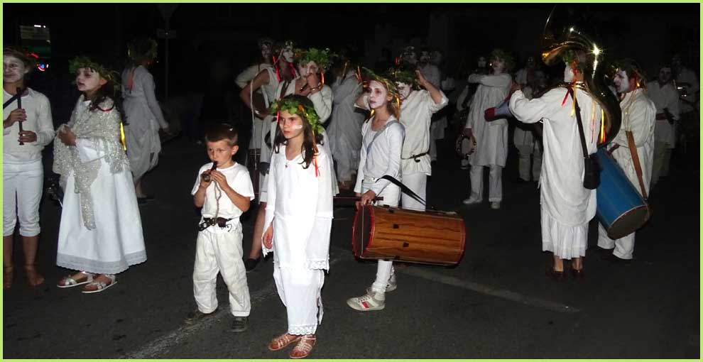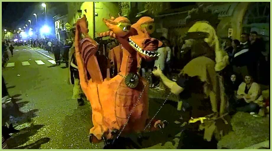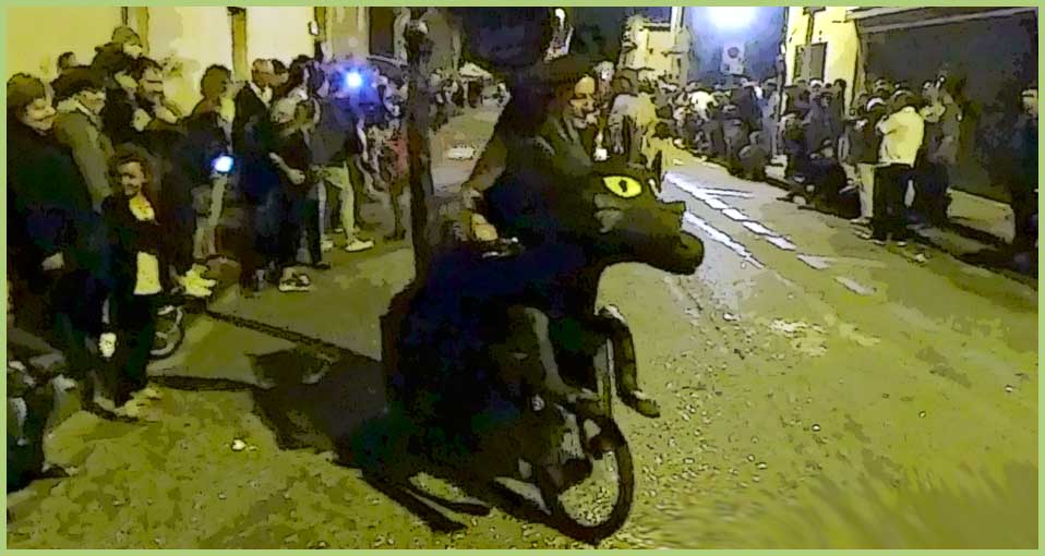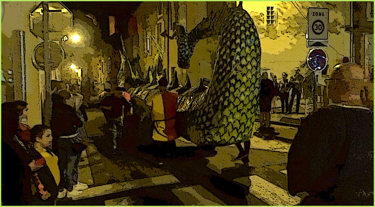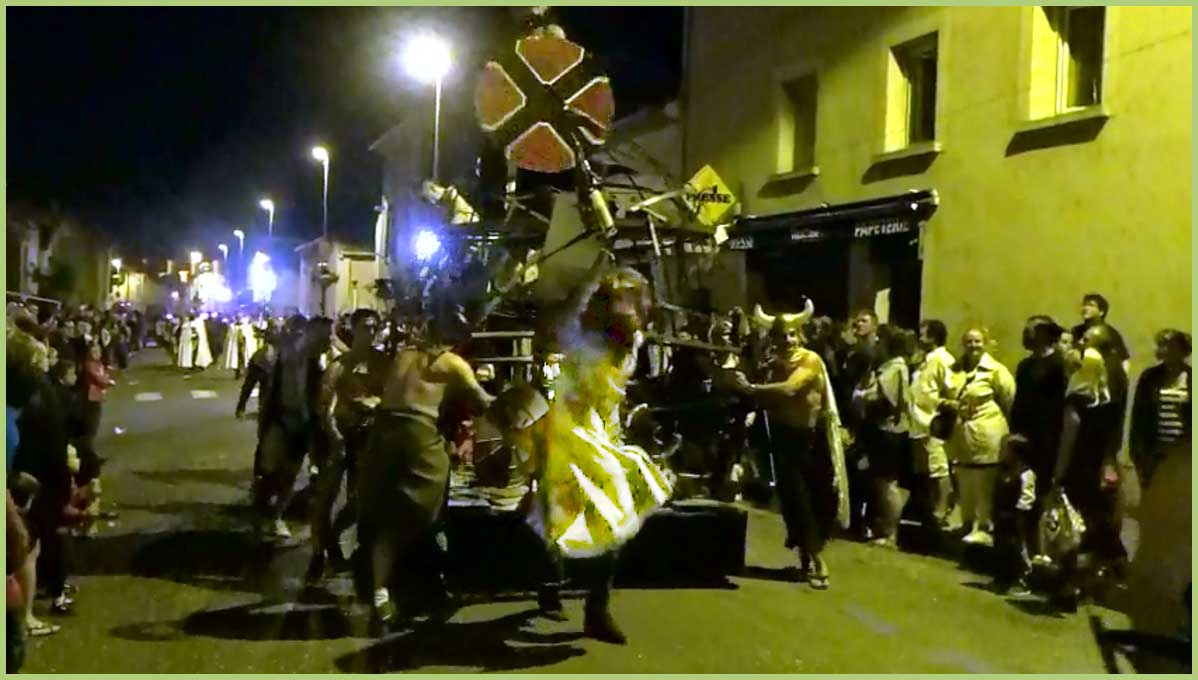 d'ici, les images sont extraites de la vidéo. Voici le corso du Drac, capté chronologiquement sans roi, ni princesse, ni royaume, ni tout le bazar qui, jadis, structurait la fête ! Un peu de technique. C'est filmé en (très) basse lumière à lueur des lampadaires. Car j'en trimbale le moins possible. Toutes ces images (1/30 de seconde) sont traitées. Elles sont plus vivantes, car saisies au vol (arrêt sur image) au meilleur endroit. Si vous voulez que ça bouge et que ça fasse du bruit, cliquez ici |