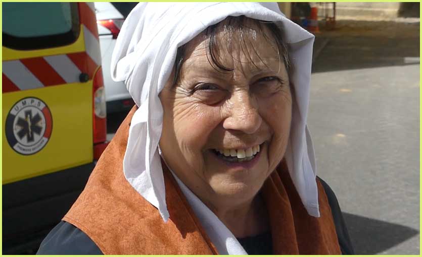 Céline (présidente du Comité) reste optimiste et ignore la pluie