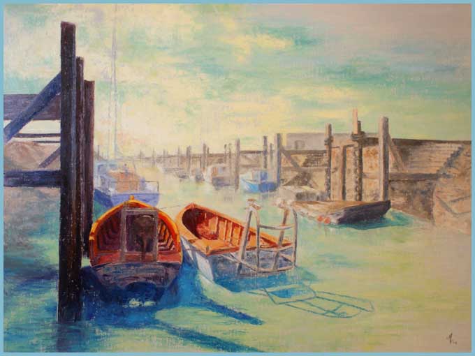 L’œil averti peut déceler l’exaltation d’un sentiment, la désolation de l’arbre mort, deux barques désespérément vides, l’aïeule emprisonnée par l’âge…Des tons chatoyants, jouant sur les complémentaires, contredisent quelque peu cette option dramatique. L’artiste rectifie le tir en citant, entre autres, son admiration pour Oskar Kokoscha (1886-1980), maître autrichien du courant expressionniste, dont les couleurs flamboyantes restent liées au tragique.