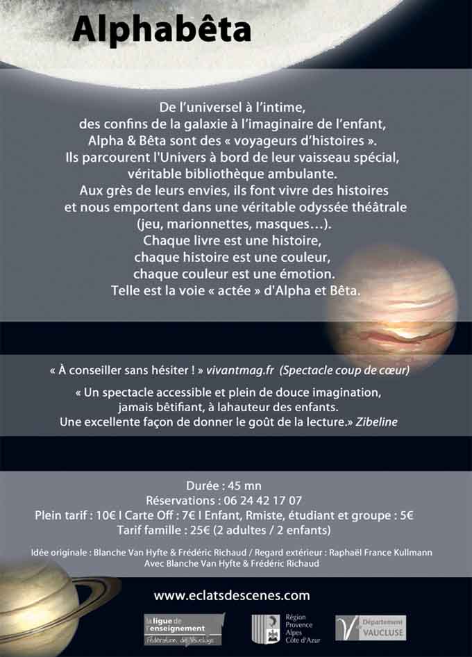 aujourd’hui du spectacle Alphabêta. Durée : 45 minutes. « Une