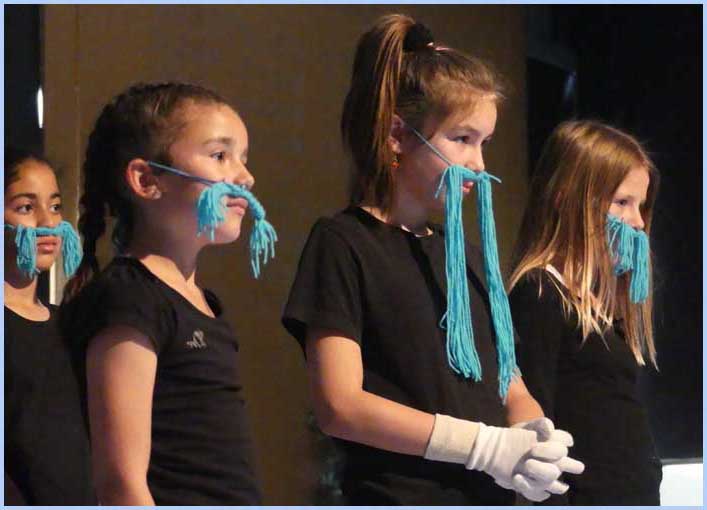 Le spectacle résulte d’une douzaine d’interventions pour chaque groupe d’élèves, initiés à la pratique théâtrale, tendant vers une fresque futuriste. Dans les faits, deux représentations de presque 2 heures ont successivement fait le plein. Pas de scène ostentatoire ni de rideau, mais un dispositif de plain-pied pour comédiens et public, avec deux podiums perpendiculaires. Soit une sorte de tribunal jaugeant les protagonistes : enfants, éducateurs, familles, etc. Le tout aspirant à un monde meilleur, préfiguré par une idylle entre Piter et Léna.               J. P.