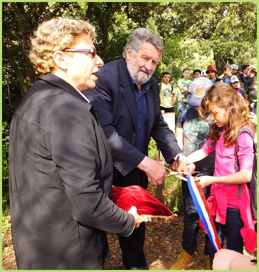 Le maire coupe le ruban inaugural.                    Une visite instructive et une action pédagogique.   (photos René Roche)