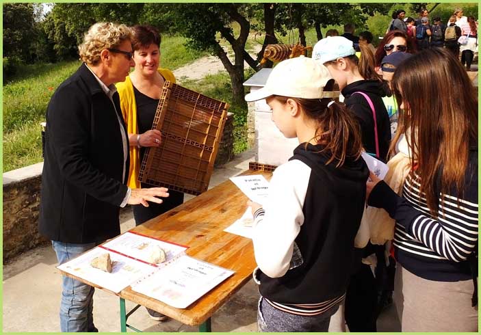 Deux demi-journées ont été consacrées à la nature. Elles ont successivement accueilli cinq classes de l’école Jean Moulin à la ferme du lieu dit Patatin, en passe de devenir une réserve de biodiversité. Cette année, l’intérêt porte sur l’apiculture autour de trois ruches dont une, à caractère pédagogique, instruit les enfants sur le travail des abeilles. Aux alentours, des plantations (amandiers, thym, romarin) pourvoient au butinage et au miel.