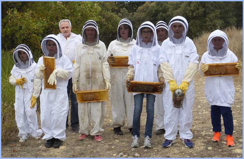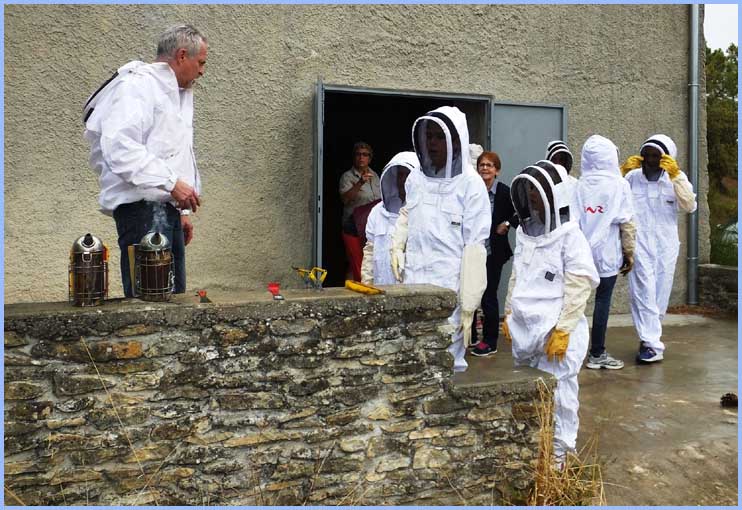 locaux, pour assister à la collecte des cadres dans les ruches et à