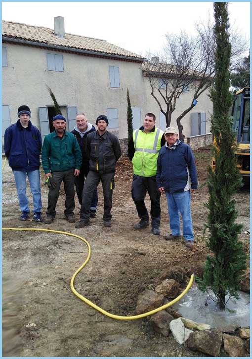C’est le début d’une série de plantations. Elle s’est poursuivie avec celle de trois cyprès, selon la coutume provençale : deux cyprès symbolisent le boire et le manger, et le troisième, le gîte. L’action prend un aspect caritatif avec la plantation d’un chêne-liège, offert par France-Cancer (qui collecte les bouchons destinés au recyclage au profit de l’INSERM). Et pourquoi pas des arbres de la paix avec la plantation imminente d’une quinzaine d’oliviers ?