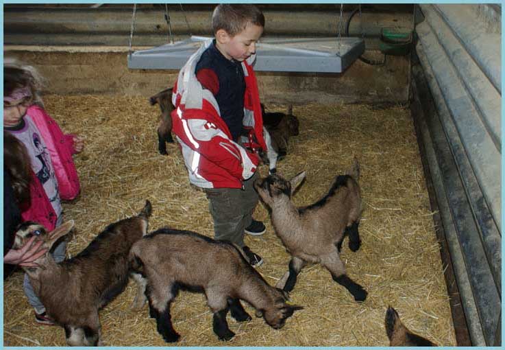 Dans le sillage d’un flux de visiteurs toujours attentifs, nous avons assisté à la traite journalière, programmée à 17 heures. Par groupes de dix-huit, les chèvres quittent leur mangeoire et sont traites simultanément par un dispositif adéquat, directement branché sur leurs mamelles. D’où ce remue-ménage qui rassasie la curiosité de familles entières. Le ravissement des enfants est particulièrement évident.