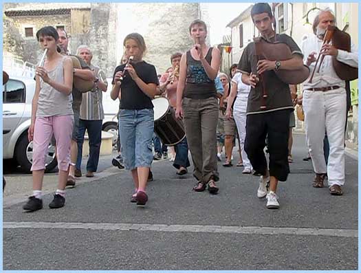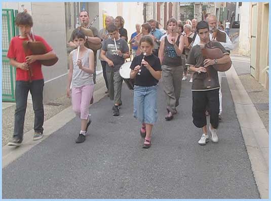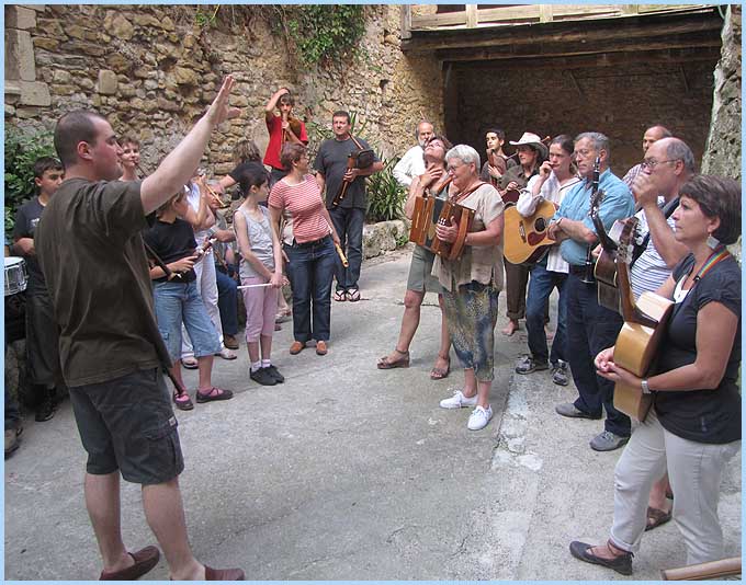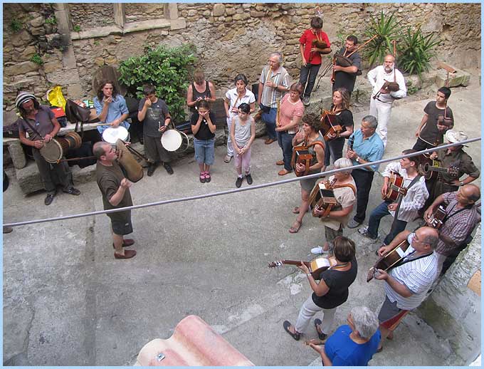 Dans la cour du Comité des fêtes. Les 30 musiciens (Mondragon et alentours) sont dirigés par Valentin Conte. |