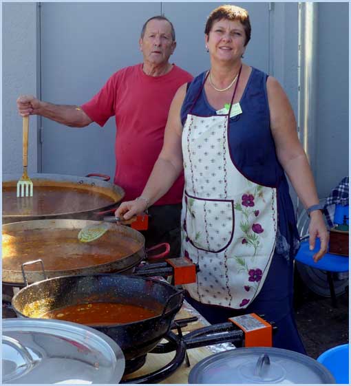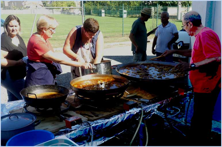 Vers midi, ils étaient rejoints par ceux qui me crapahutaient pas dans la colline, pour une paella dégustée par une centaine de convives. Une participation financière a donc rempli la cagnotte  (marche 8 €, avec repas 15 €, enfant 7 €). Rendez-vous l’an prochain.