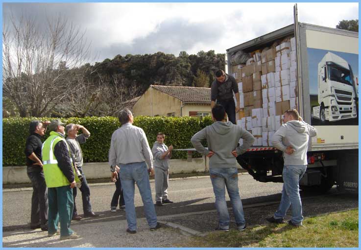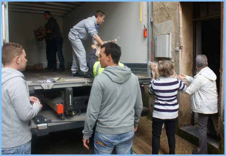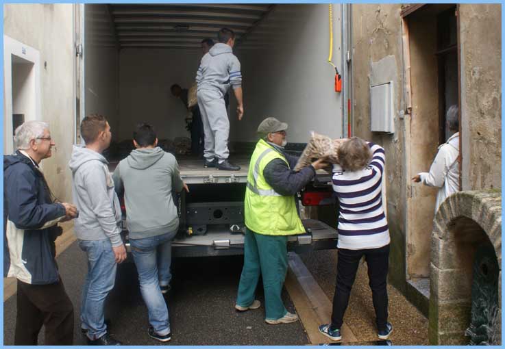 Chargement du camion gracieusement mis à disposition par l’auto-école du Lycée Gallieni de Fréjus et à destination de France Cancer 06 à Cannes La Bocca.