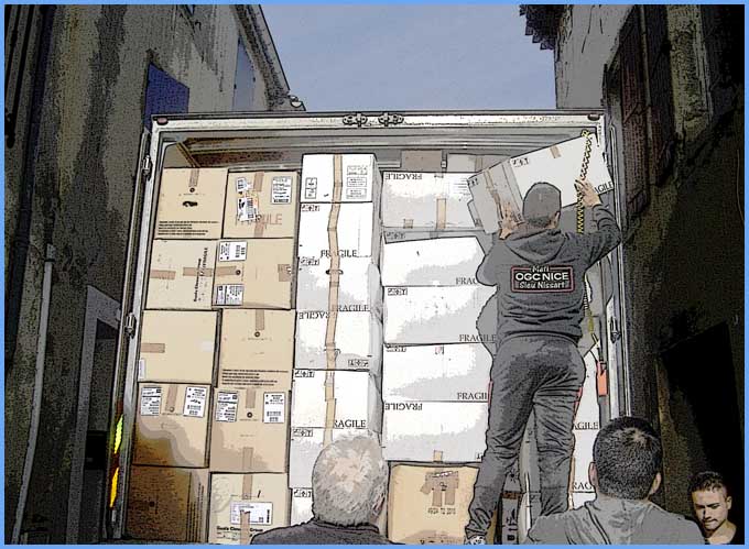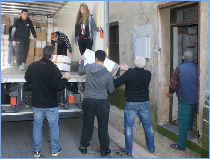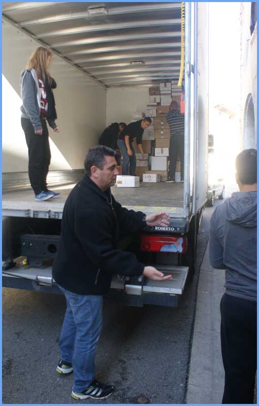 Chargement du camion mis à disposition par l’auto-école du Lycée Gallieni