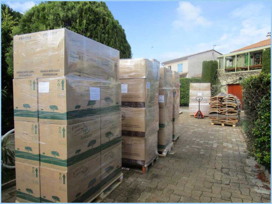 Sept palettes de bouchons de liège (environ 2 tonnes) et deux palettes de plaques de liège (500 Kg) ont été enlevées par Gard Transports à destination du liégeur AMORIM à Eysines près de Bordeaux pour recyclage. Une particularité pour cet envoi : en février dernier, au salon VINISUD de Montpellier, la récupération de plaques de liège ayant servi à la décoration du stand des professionnels du liège. France Cancer remercie MM. Bosch et Mohnem, qui ont facilité l’opération.