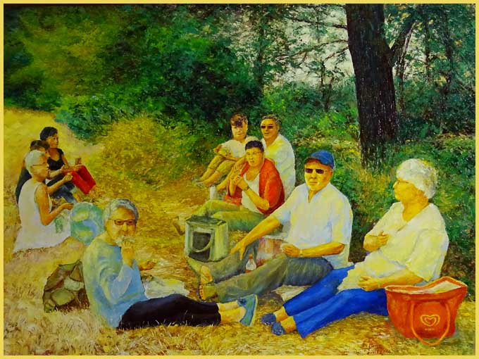 • Robert Lloret. Sa "pause déjeuner" en plein air a des allures du "Déjeuner sur l‘herbe" de Manet. Le scandale de l’époque (femme nue) en moins. Ses paysages lumineux sont une ode à la nature. Toutes les saisons y passent.