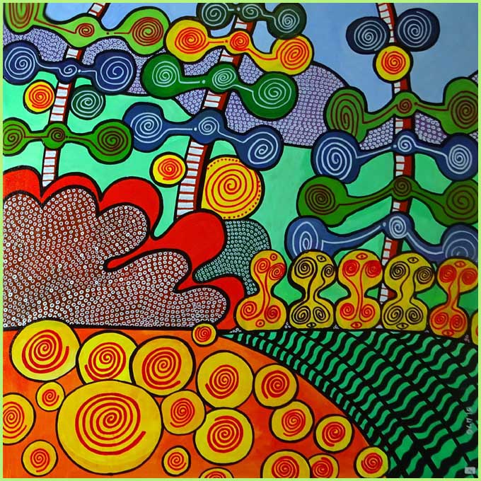 Delphine Oddon. Elle intègre le GRAAL pour la première fois. Formée par les Beaux-arts de Besançon, elle dut d’abord occuper des emplois de graphiste et d’attachée commerciale avant de concilier vie familiale et création artistique. Elle se livre aujourd’hui à la figuration libre : un entrelacs de motifs colorés comme autant de guirlandes d’un monde enchanteur.