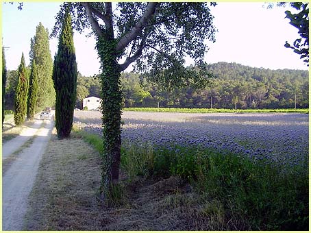 p A proximité du vignoble, ces drôles de lavandes... qui sont en fait de superbes fleurs de "facélie" (m'a précisé Isabelle Guichard) |