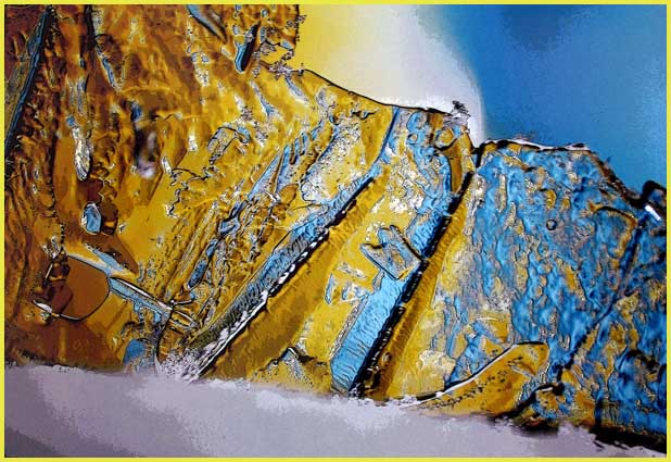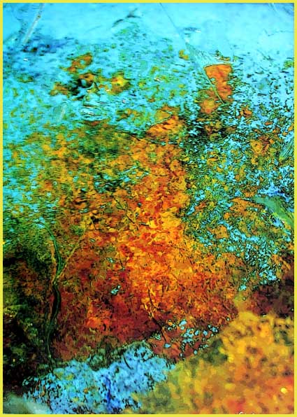 L’artisanat peut apparaître sous les formes les plus inattendues, dont celle-ci que nous présentait l’Association pour la Mise en Valeur du Patrimoine Bollénois (AMVPB) lors des journées du patrimoine. Des photos aux tonalités chatoyantes arborent des titres suggestifs : future vallée, pyramide, zinguerie, verrerie… Soit autant de compositions abstraites, évoquant le cosmos ou les abysses. Elles sont dues à Jean-François Paquet, peintre décorateur, qui admet : « A chacun d’y fixer son imaginaire. »