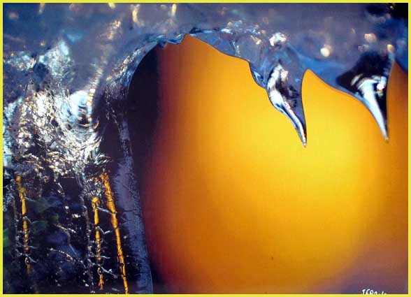 En soi, ces photos constituent d’étonnants éléments décoratifs. Or elles ne sont que la trace de compositions mixtes fugitives, d’abord emprisonnées dans la glace, puis photographiées avant de fondre inexorablement au soleil. L’artiste nous confie : « Je suis passionné par le froid, les Pôles Nord et Sud. J’ai une triple formation : photographique, colorimétrique et éclairagiste. Cette exposition est la combinaison des trois. »