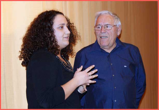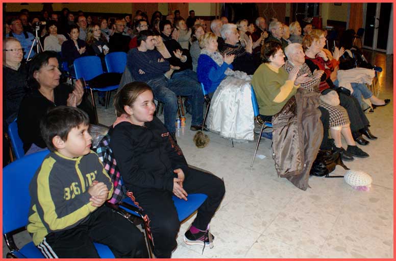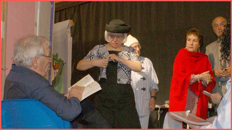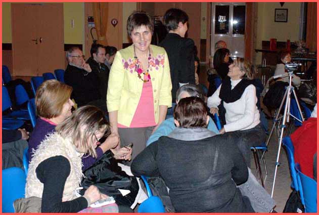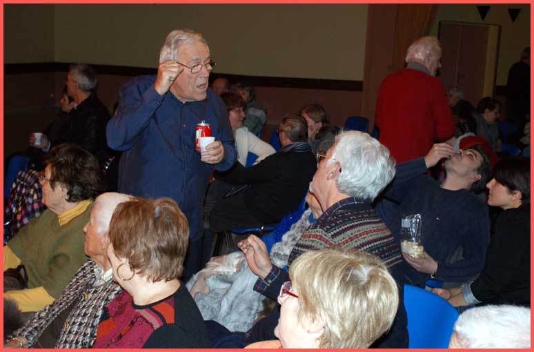 Bain de foule des comédiens durant l'entracte. Au centre : Julie Hernandez (présidente des Lutins) et Gérard Blanc (Tréteaux).