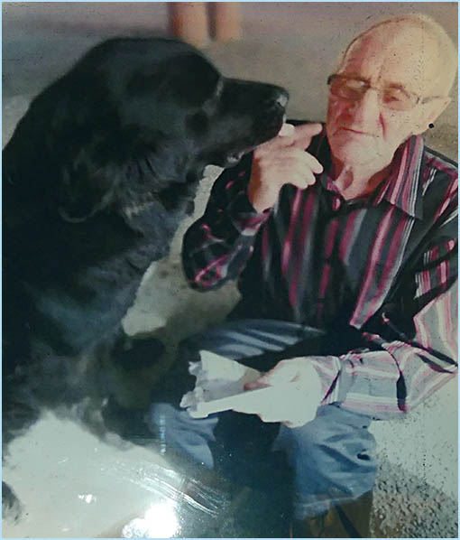 chien Alvira ne le quitte jamais. C'est la mascotte des pêcheurs.