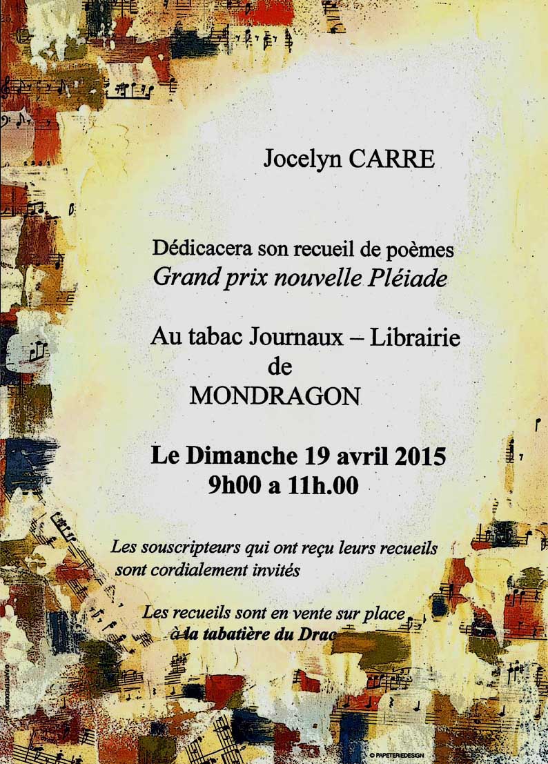 l’ordre de Jocelyn Carre, 62 allée de Bellevue, 84430 Mondragon. Ce nouveau recueil sera envoyé aux