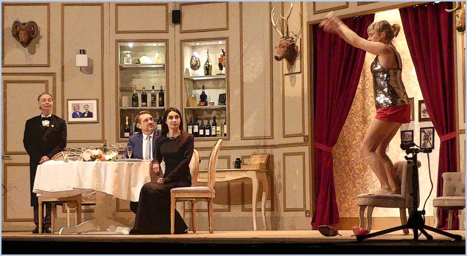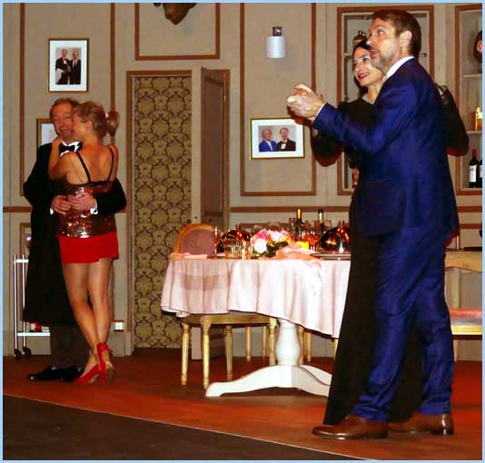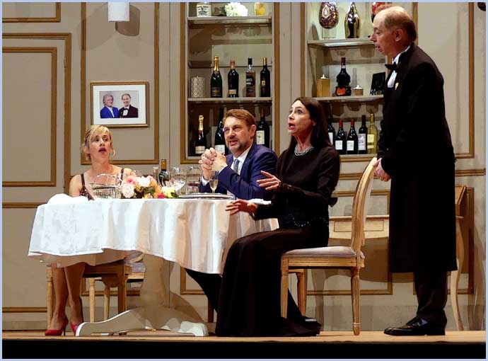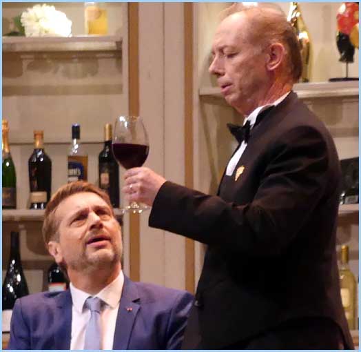 Dans une brasserie étoilée, quatre comparses inspirés (Philippe Chevallier, Didier Gustin, Marianne Giraud et Juliette Poissonnier) pourvoient à la comédie grinçante avec un sommelier impertinent, un député hâbleur, une épouse pisse-froid et une amante dévergondée. Mal ficelés, de tels ingrédients risqueraient de stagner au-dessous de la ceinture.