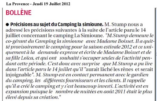 Bollène - Tourisme Camping la Simioune : Roland Stump s’explique Vendredi 20 Juillet 2012
