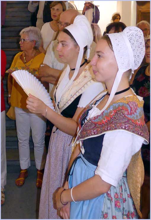 Elle-même joliment habillée en Comtadine parmi les membres de « Li Cardelina », la présidente Brigitte Carillo