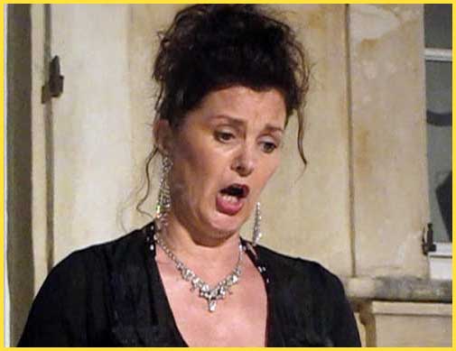 Christel Lindstat (contralto), au mieux de sa forme, rentre des Landes où elle a triomphé dans "Madame Butterfly". La voici ce soir à Bollène... Arrrghhh...! |