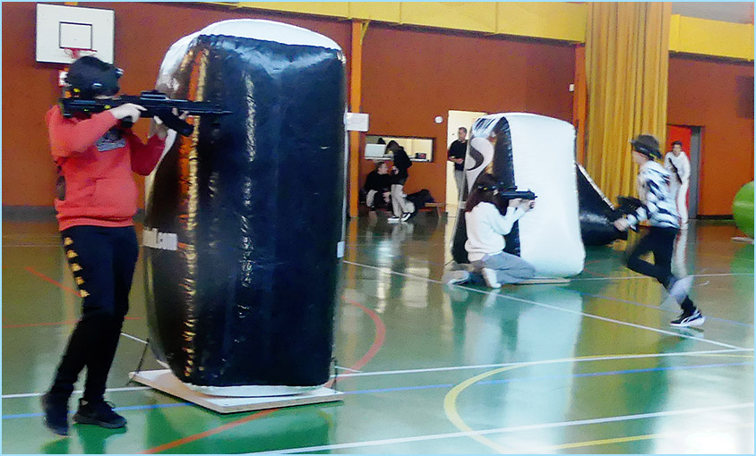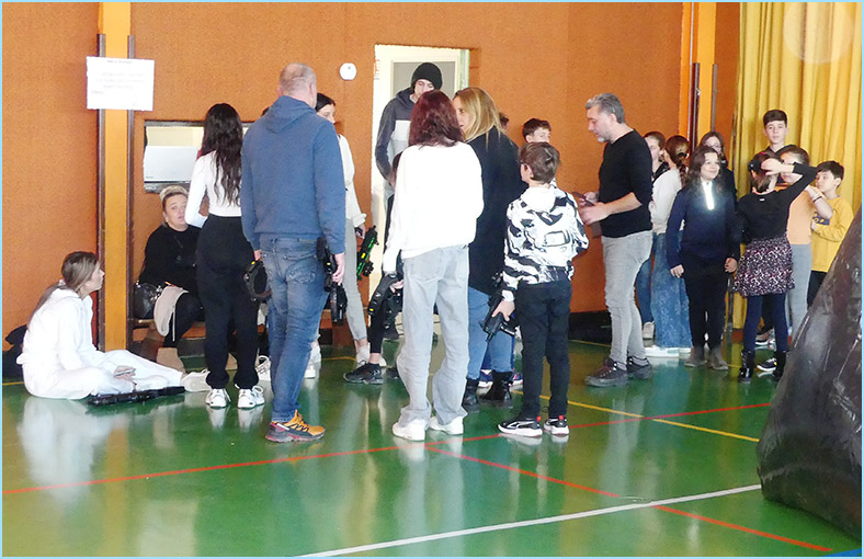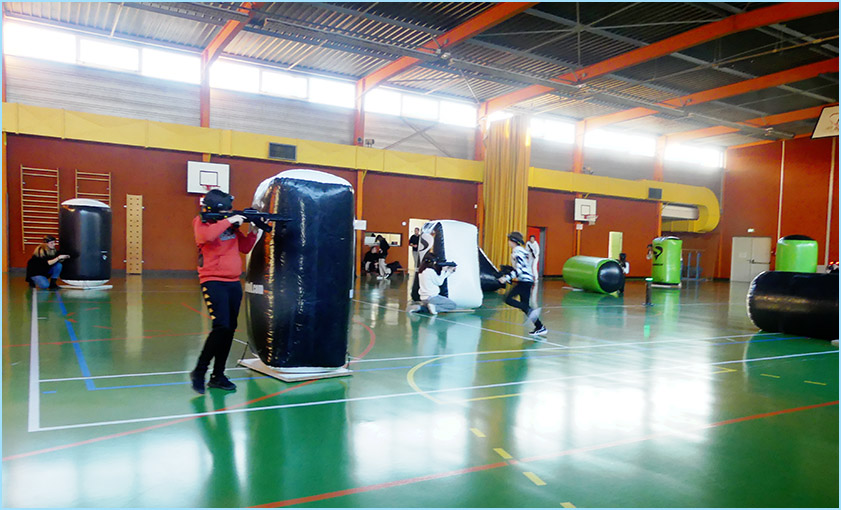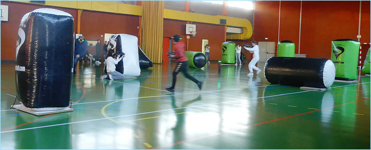 plein de la salle des fêtes et du gymnase adjacent, où était