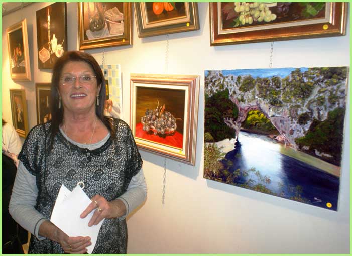 Avec maîtrise, elle passera à l’acrylique et à l’huile. Retraitée à Bollène depuis 13 ans, elle poursuit aujourd’hui une œuvre chatoyante, comme en témoigne ici une quarantaine de tableaux. Leur style figuratif et bien léché a un impact certain. Les paysages, fleurs, portraits, chiens et natures mortes sont d’une véracité saisissante. Trop, peut-être, comme le laissent entrevoir quelques échappées impressionnistes, où l’émotion sacrifie habilement le détail superflu.