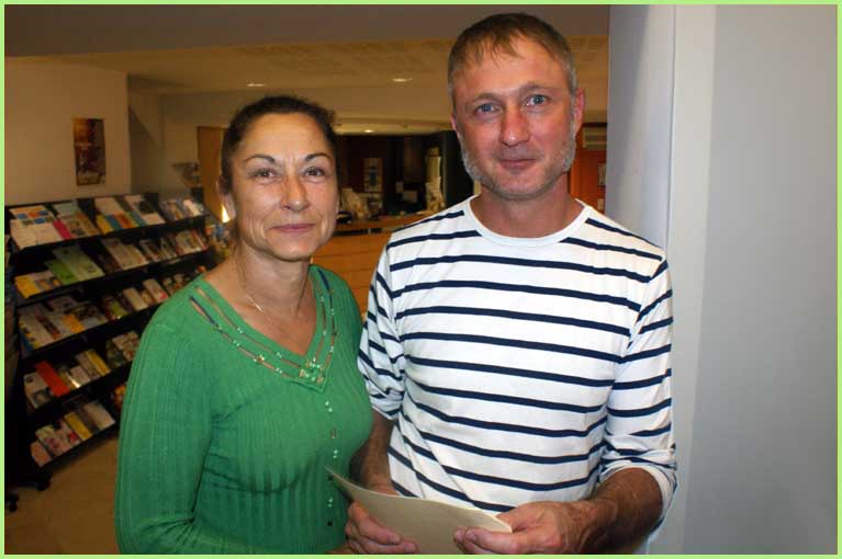 Belle complicité entre la présidente de l'Oustau et son prof de peinture !
