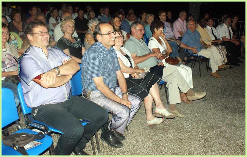 Dans un registre surprenant, où les vents se substituent parfois à la flûte ou au violoncelle, ont donc été joués, ce beau soir-là à la belle étoile : Rossini (l’échelle de soie) et Geminiani (sonate), deux compositeurs moins connus, Widerkehr et Flégier (trios) et des musiques de films dont celles de « Il était une fois dans l’Ouest » et « Chantons sous la pluie ».
