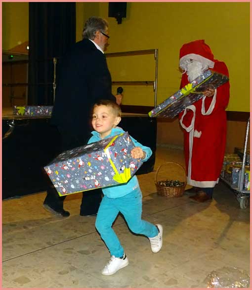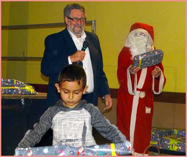![]() Discours élogieux du maire et arrivée du Père Noël  |