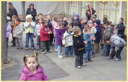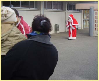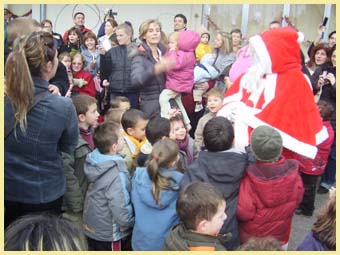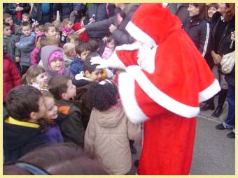 Le voilà ! On lui chantera d'abord trois jolis chants de Noël. Puis suivront un goûter et une distribution de friandises dans les classes. |