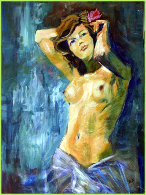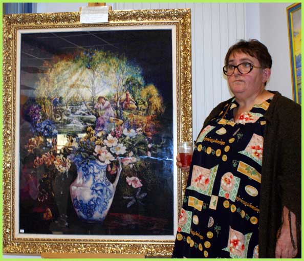 Mention spéciale pour Evelyne Beaucamp qui présente une tapisserie hors du commun : la cruche d’eau (6000 heures de travail). Une découverte : Christine Truc qui s’essaie à la peinture avec deux nus bien campés.