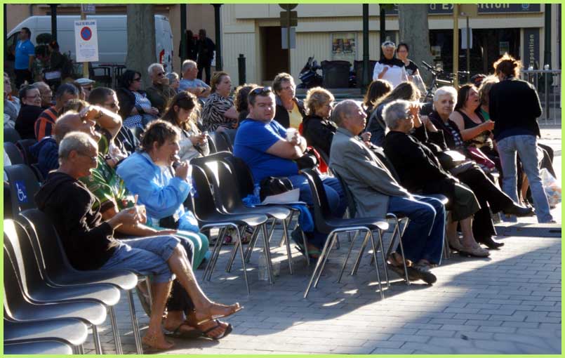 Le soir même, allait débuter les Polymusicales 2014, soit une vingtaine de spectacles gratuits en tous genres. Trois heures avant l’ouverture, confiée à Philippe Lavil, des groupies occupaient déjà les premiers rangs des bancs, alignés devant le podium et l’hôtel de ville.