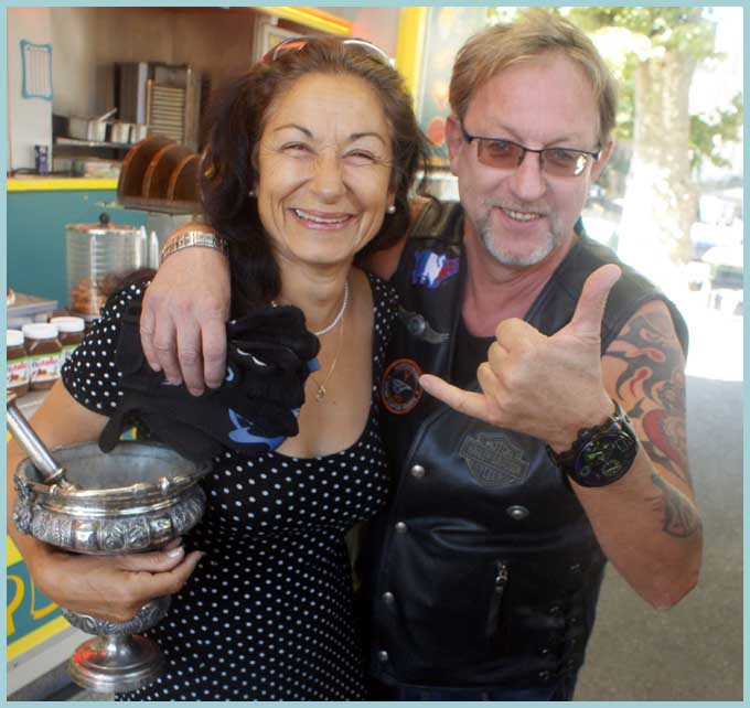 Un rassemblement de motards qui ratisse à 100 Km autour de Bollène.                           Marie-Claude Charpentier (Oustau) et Alain Relin (motard)